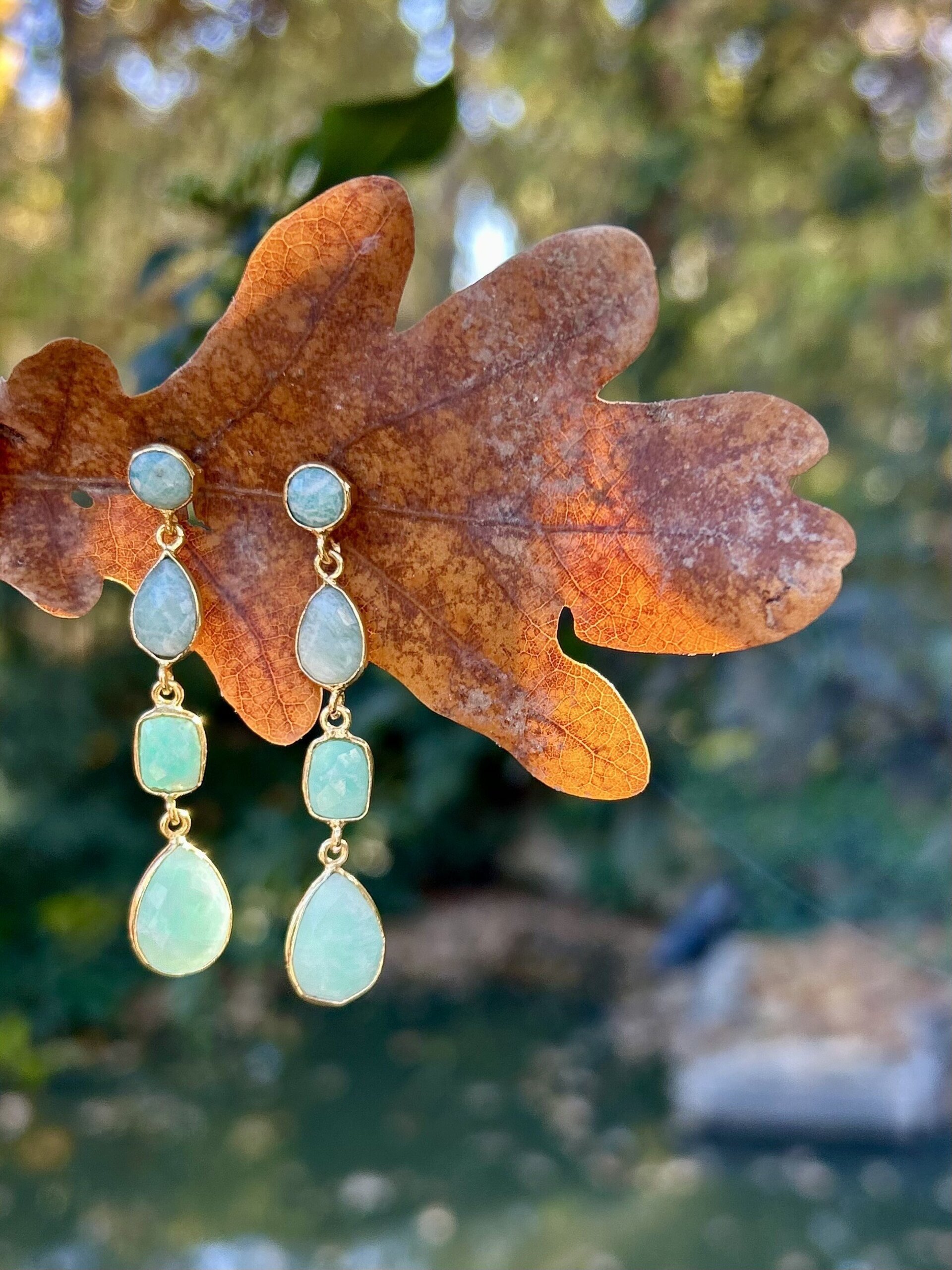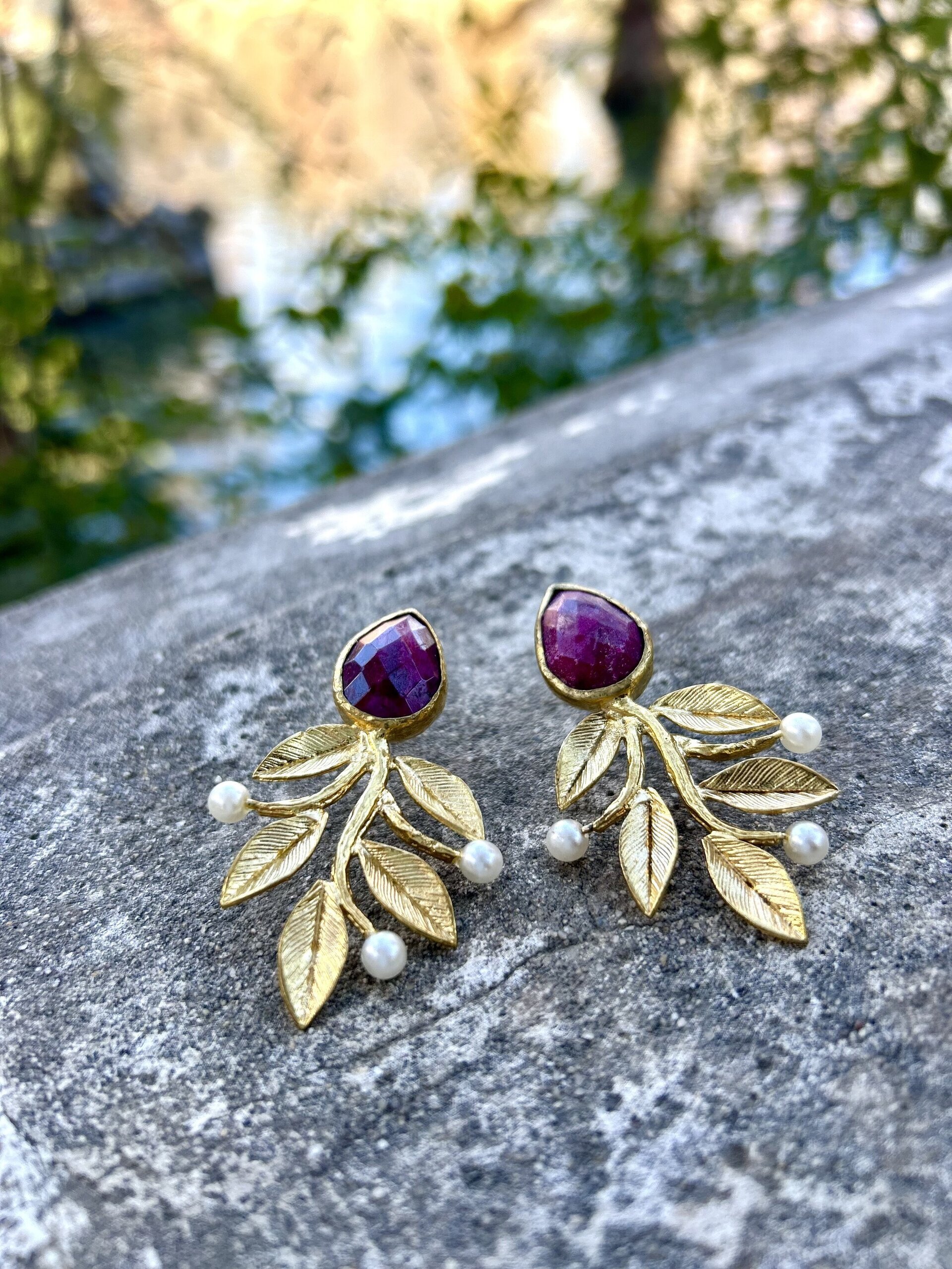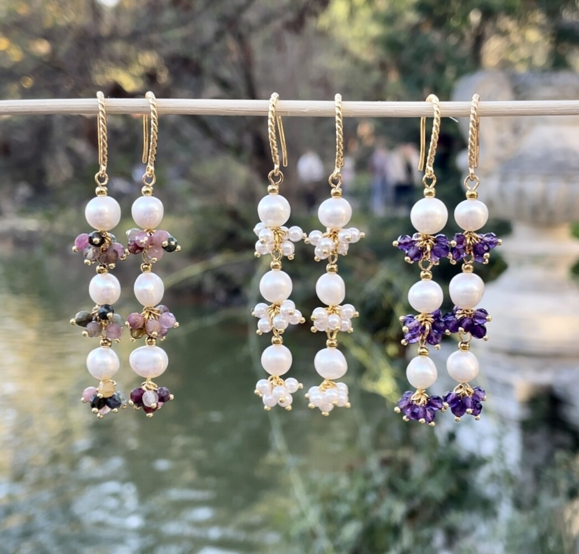 Nuestros pendientes se realizan con perlas de río y piedras naturales. El enganche es de acero inoxidable para evitar alergias, siendo el resto del pendiente de cobre chapado en oro de 18K. El color de las piedras naturales puede variar ligeramente entre los pendientes de un mismo modelo.