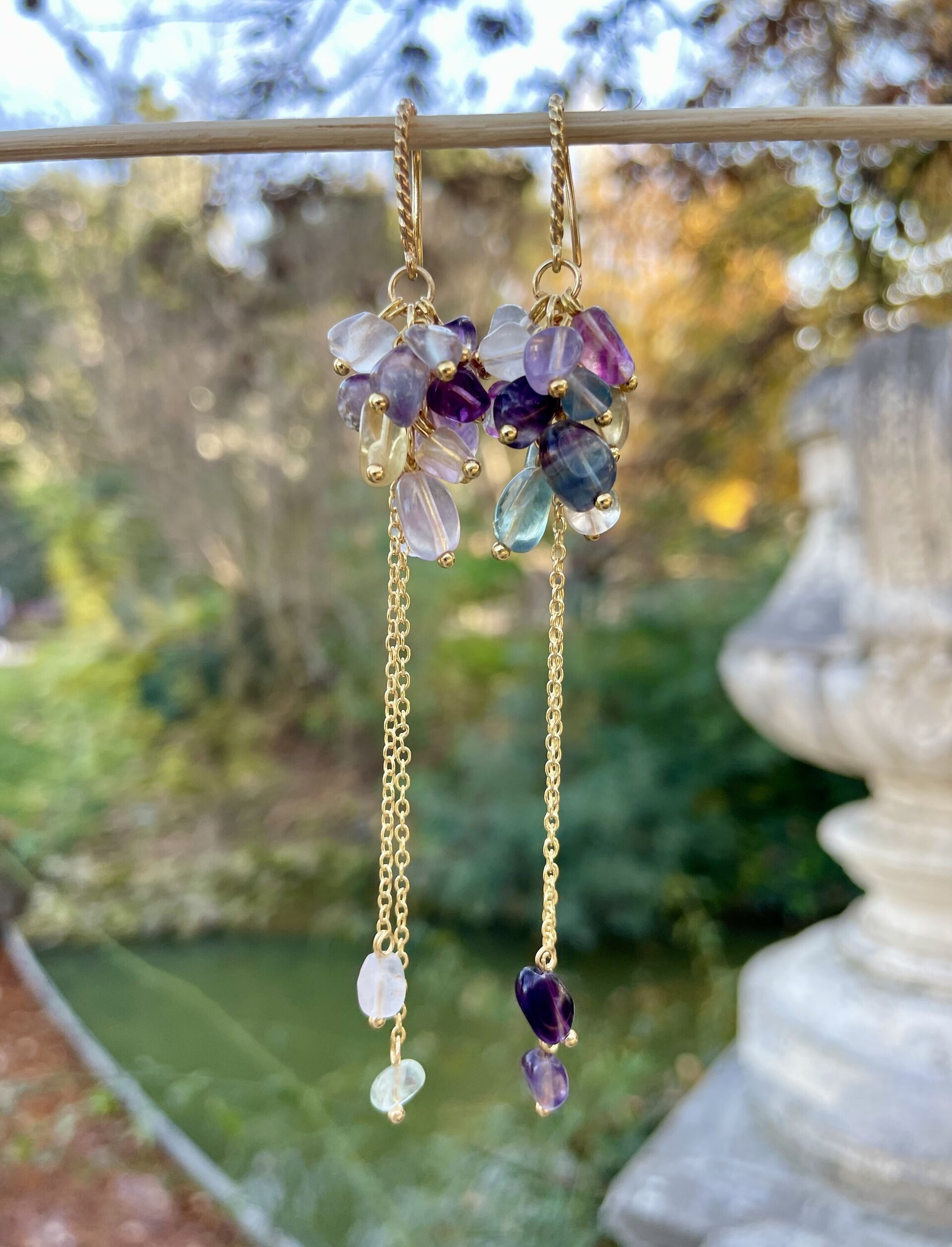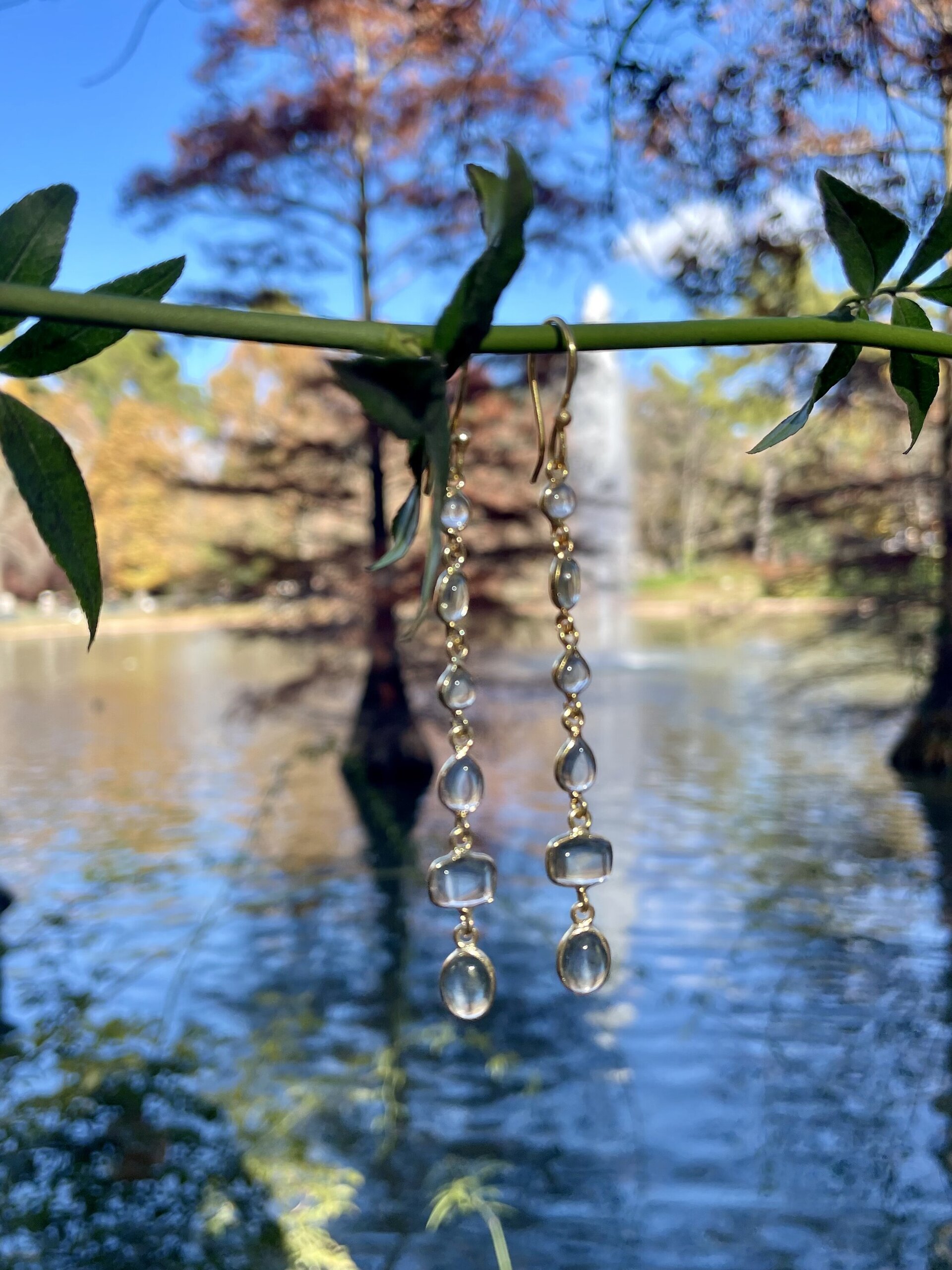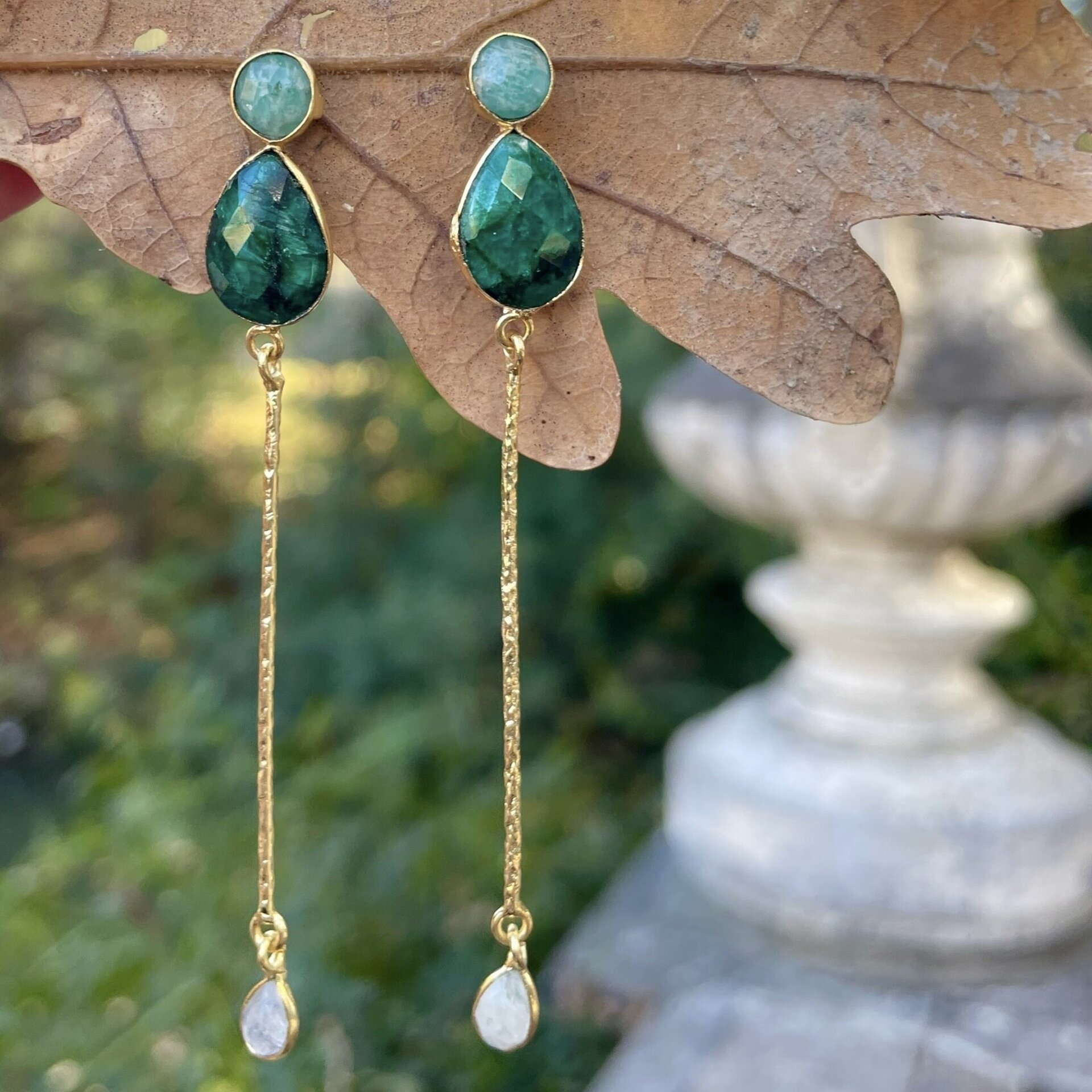 Nuestros pendientes se realizan con perlas de río y piedras naturales. El enganche es de acero inoxidable para evitar alergias, siendo el resto del pendiente de cobre chapado en oro de 18K. El color de las piedras naturales puede variar ligeramente entre los pendientes de un mismo modelo.